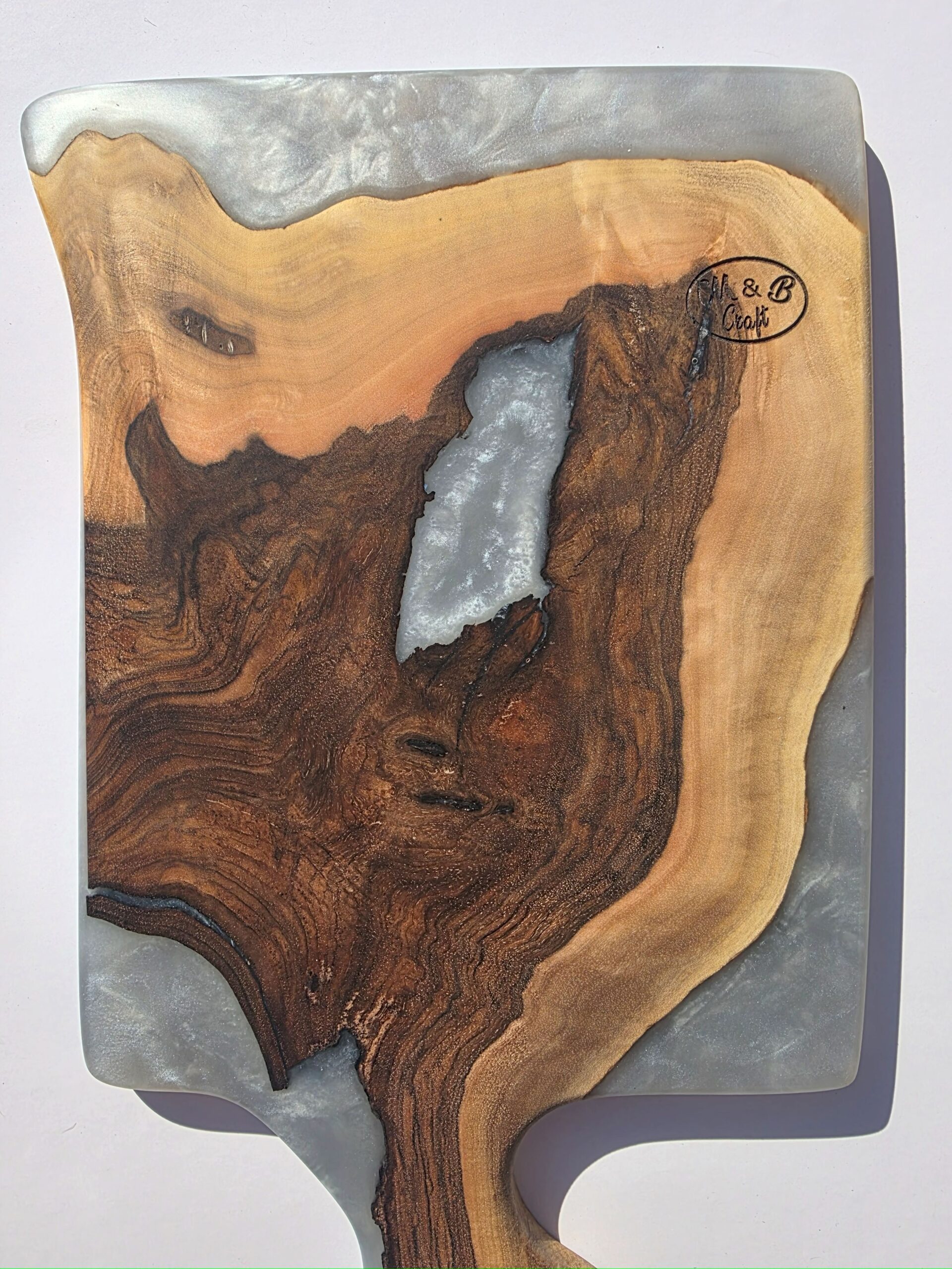 Designed with versatility in mind, this tray is available in two convenient sizes: 9×10 inches and 9×12 inches, making it perfect for serving, display, or as a decorative centrepiece. The substantial thickness of 0.8 inches ensures durability and a premium feel, while the smooth, polished surface highlights the rich, natural wood grain, contrasted beautifully by the colourful resin inlays.