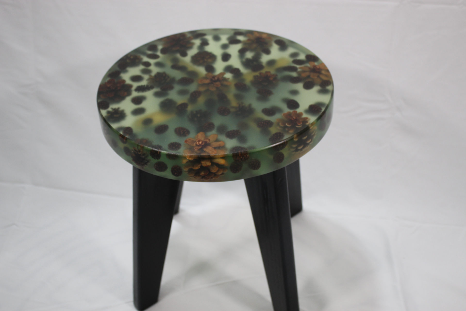 Brilliant piece of furniture! The resin finish is smooth, and the pinecone design gives it such a rustic yet modern charm. It arrived well packaged and on time. I use it in my reading nook and get compliments from guests all the time. Five stars from me!