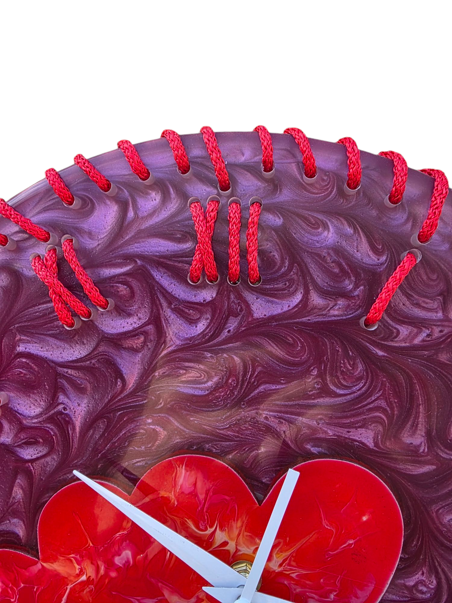 Order now to secure this limited-stock artisan piece that promises both quality craftsmanship and responsive customer service from our shop. We offer safe shipping and flexible returns to ensure your satisfaction. The Artisan Heartbeat Wall Decoration Clock is a striking design that serves as a statement piece in any home decor, blending a modern timepiece with handmade artistry. The unique combination of deep purple, red hearts, and red stitches creates a romantic and slightly quirky feel, while the decorative elements on the wall beautifully complement the clock and enhance the overall aesthetic of the space.