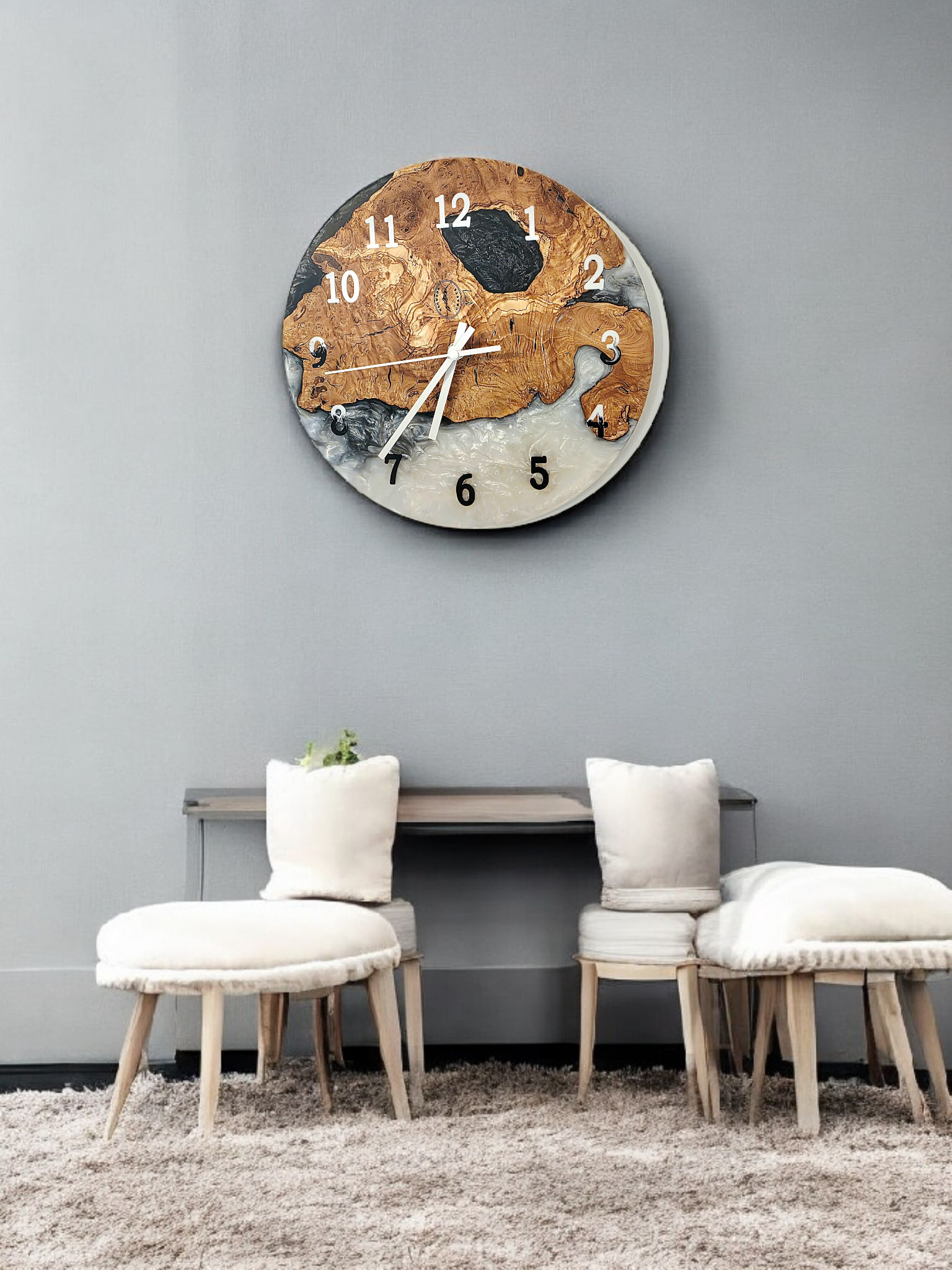 Discover the perfect blend of natural beauty and modern artistry with our exquisite wall clock. Meticulously handcrafted, this timepiece features a striking design where the intricate patterns of olive wood meet the smooth, glossy finish of epoxy resin. The unique interplay of textures and colours creates a captivating focal point for your living room, office, or bedroom. More than just a way to tell time, it’s a statement piece that reflects your appreciation for distinctive, artisanal decor.
