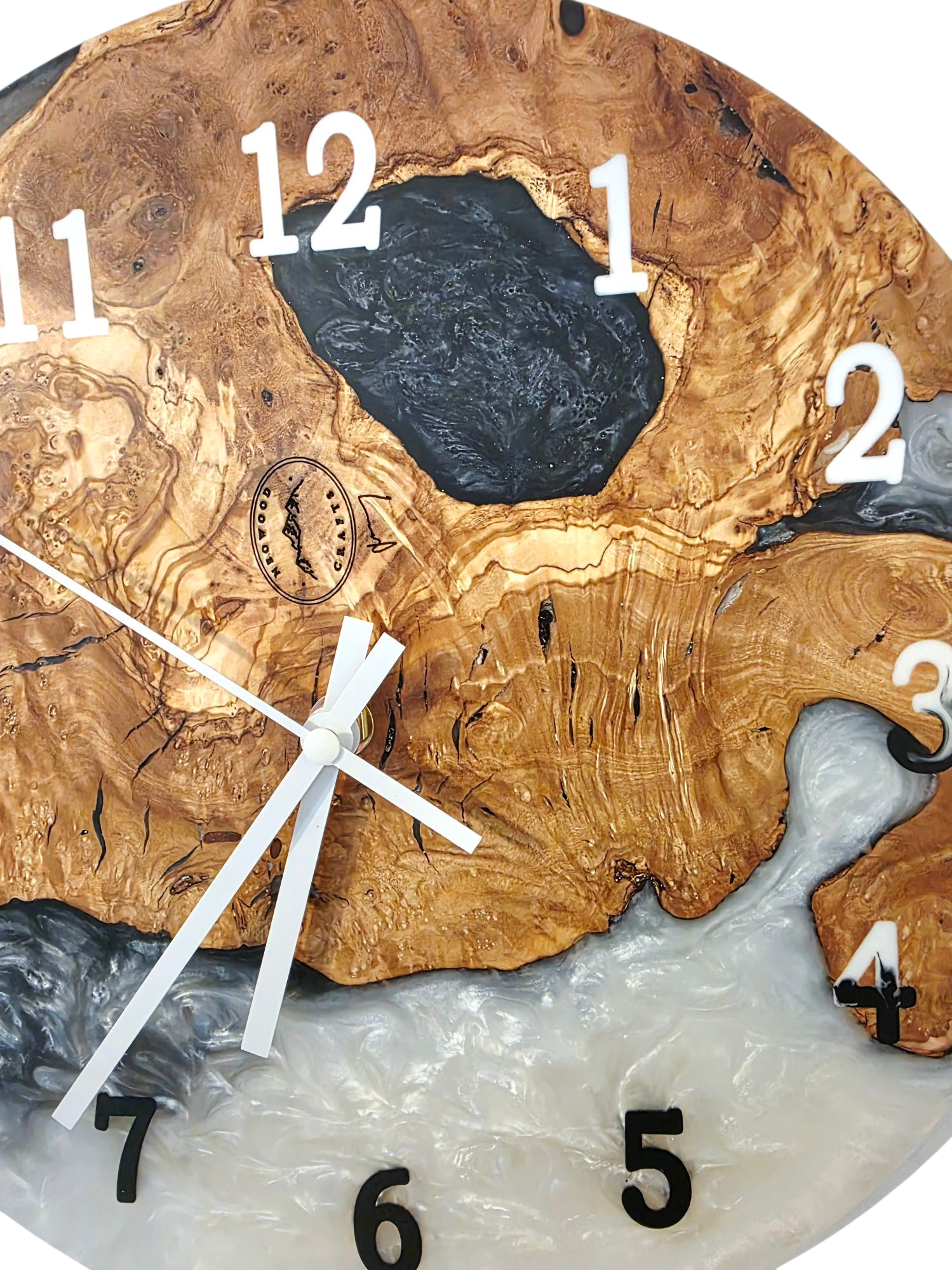 Unique blend of natural olive wood and modern epoxy resin.
