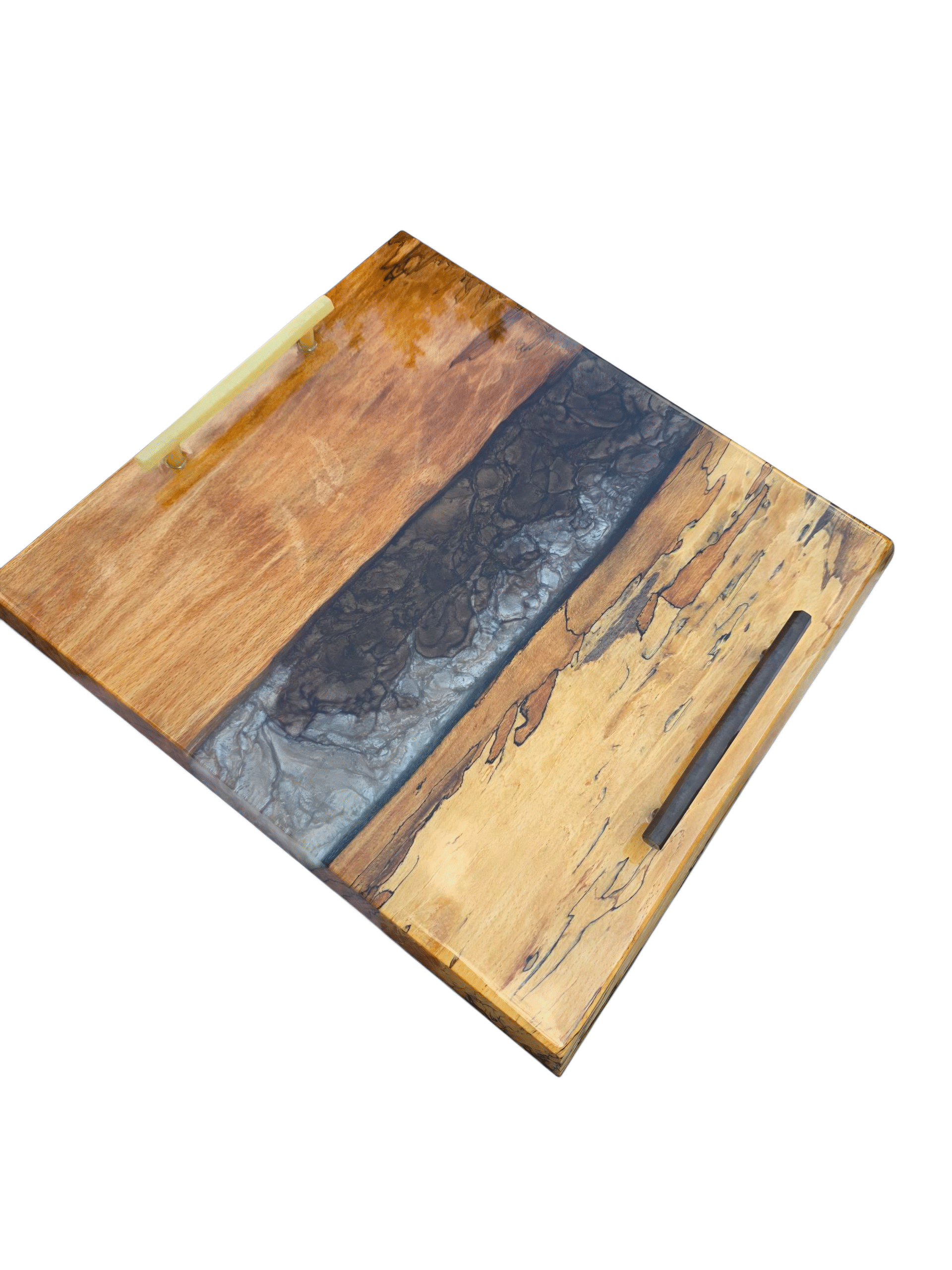 The handles are made from the same epoxy colours used for the river flow.