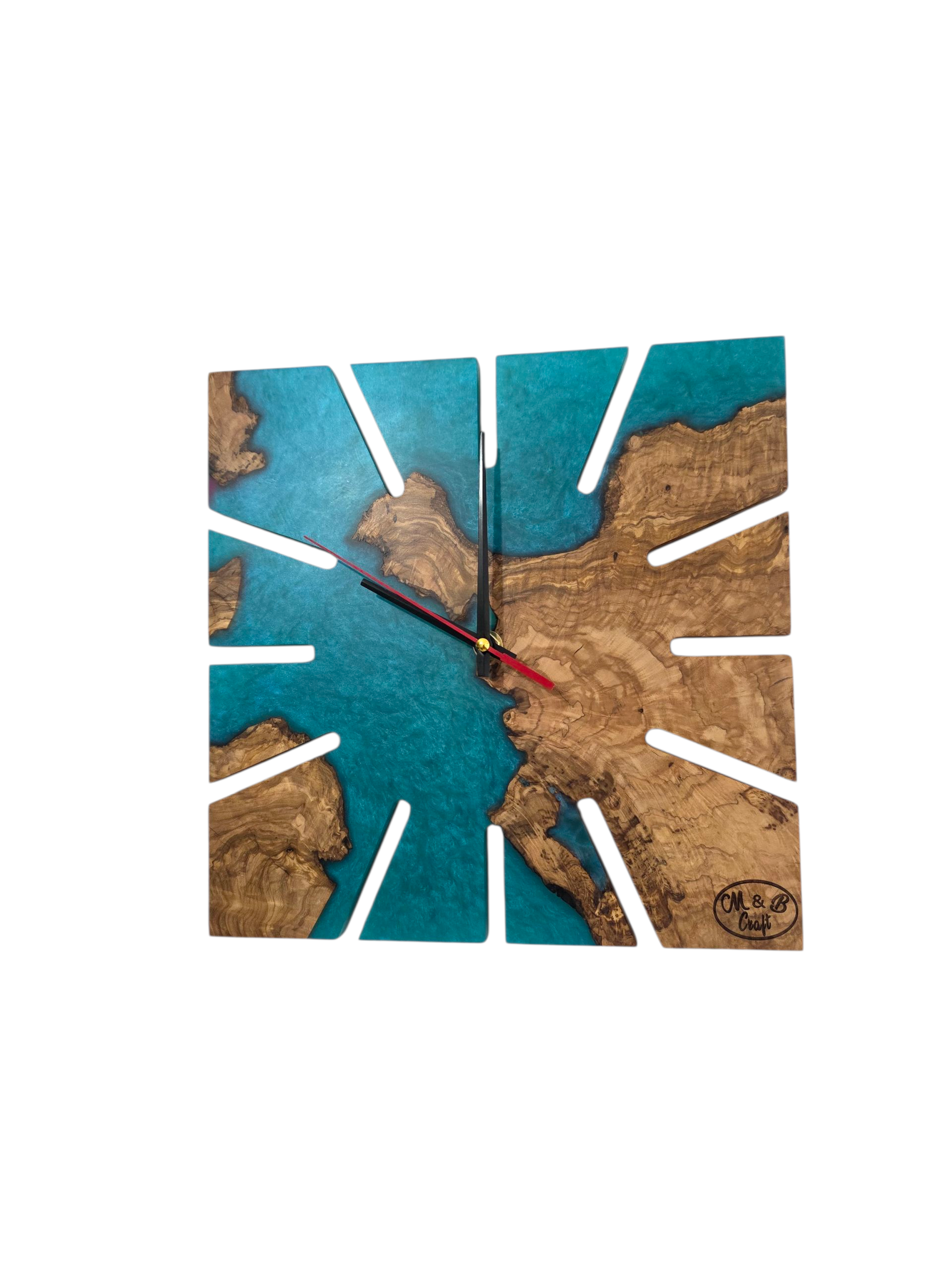 Elevate your space with this stunning handcrafted rustic home decor resin clock from Mandbcraft, expertly designed to blend natural wood with vibrant resin accents. Each clock is a one-of-a-kind piece, showcasing the beauty of wood grain paired with colourful, artistic resin inlay. Perfect for adding a touch of modern elegance and rustic charm to any room!